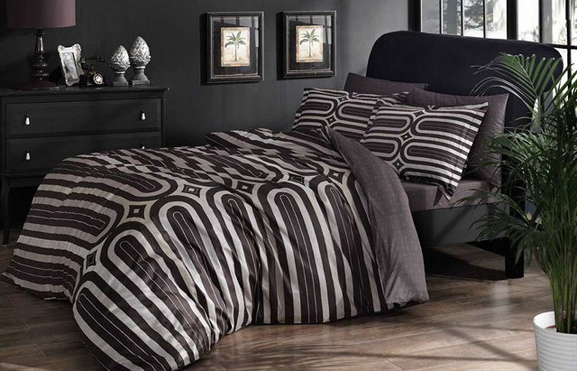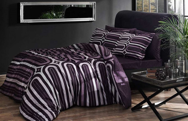 סט מצעים זוגי סאטן מסדרת הדלוקס 100% כותנה, בהדפס גאומטרי ייחודי.