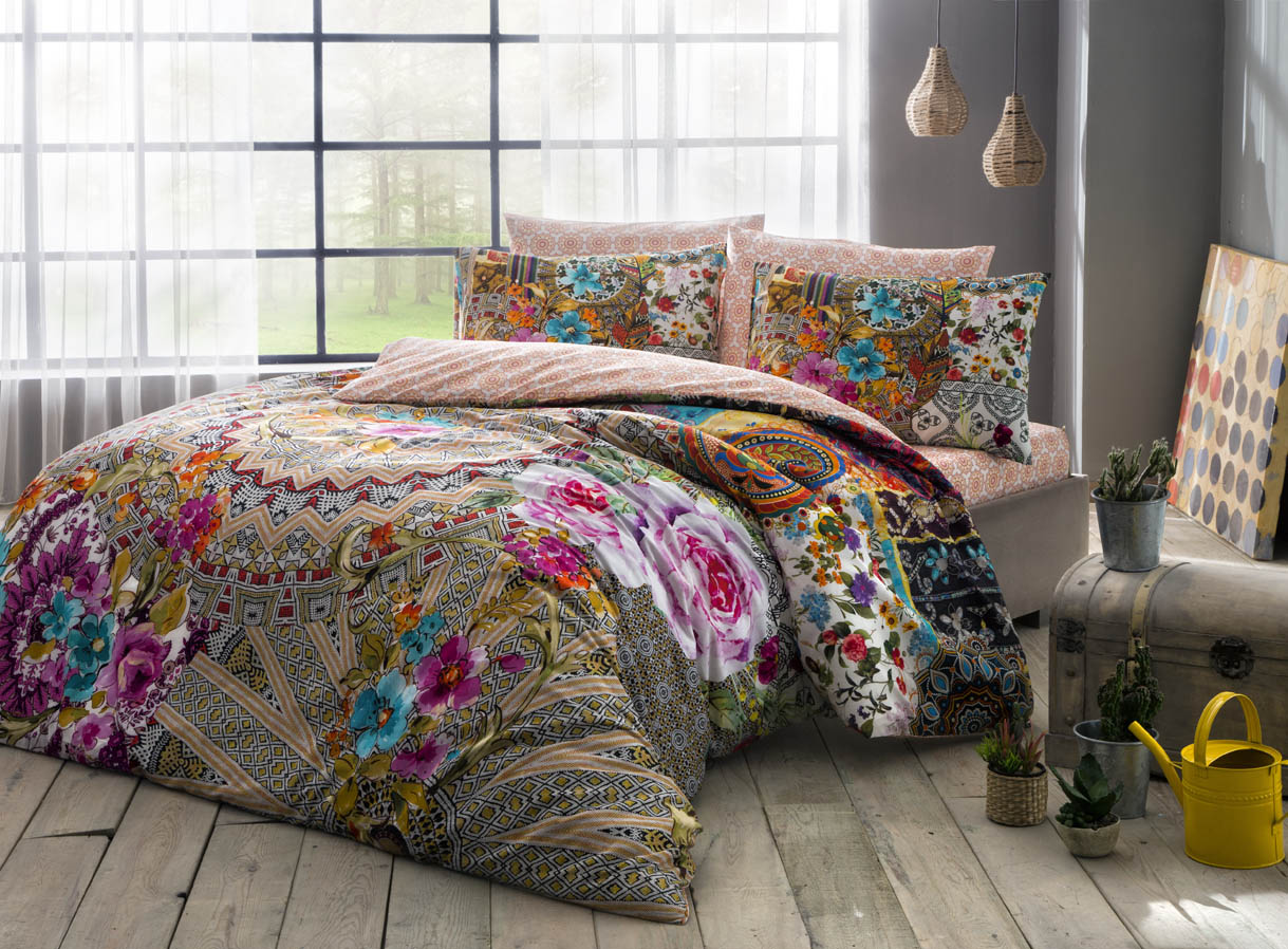 סט מצעים יחיד 100% כותנה, בהדפס פרחוני צבעוני ושמח.